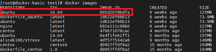 Dockerfile의 각 라인이 하나의 Step이 되며, 각 Step마다 여러 색깔로 표기한 IMAGE ID가 생성되는 것을 확인할 수 있다. Step 1/5 를 보면, ubuntu:16.04를 받아야 하는데, 이미 보유하고 있으므로 다운받지 않는다. 또한 출력되는 IMAGE ID는 005d2078bdfa인데, 이 코드는 docker images의 결과로 나왔던 ubuntu 16.04 버전과 동일한 ID이다. 따라서 Dockerfile을 build할 때는 원래 있는 이미지는 재사용하는 것을 알 수 있다.