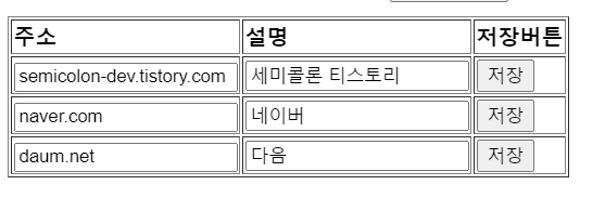 1. 테이블에 모든 줄에 저장 버튼이 있음