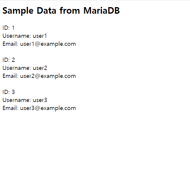<h2>Sample Data from MariaDB</h2>